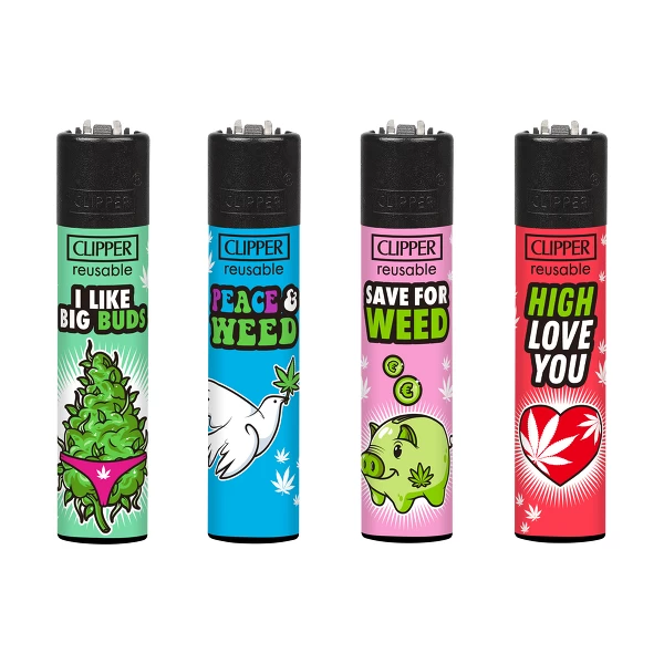 Clipper Feuerzeuge – Motive: Weed Slogan 11 im 4er-Set