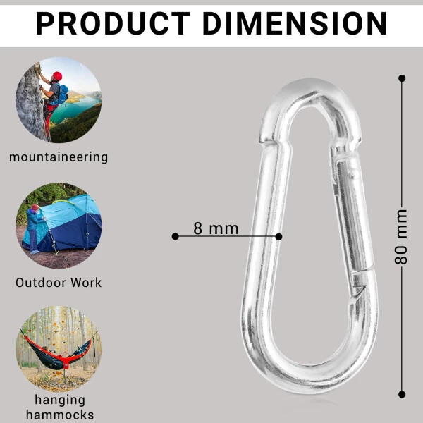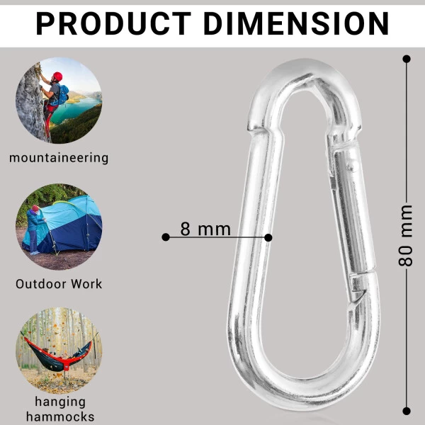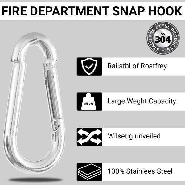 Feuerwehr Karabinerhaken 5 Stück, 3 Größen: 70×7 – 80×8 – 100×10